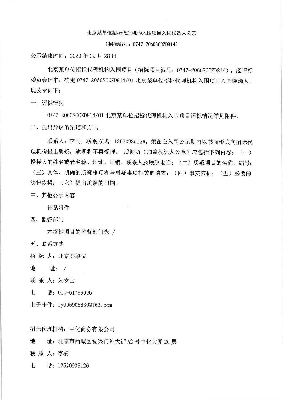 北京华采招标代理有限公司成功入围北京某单单位候选人